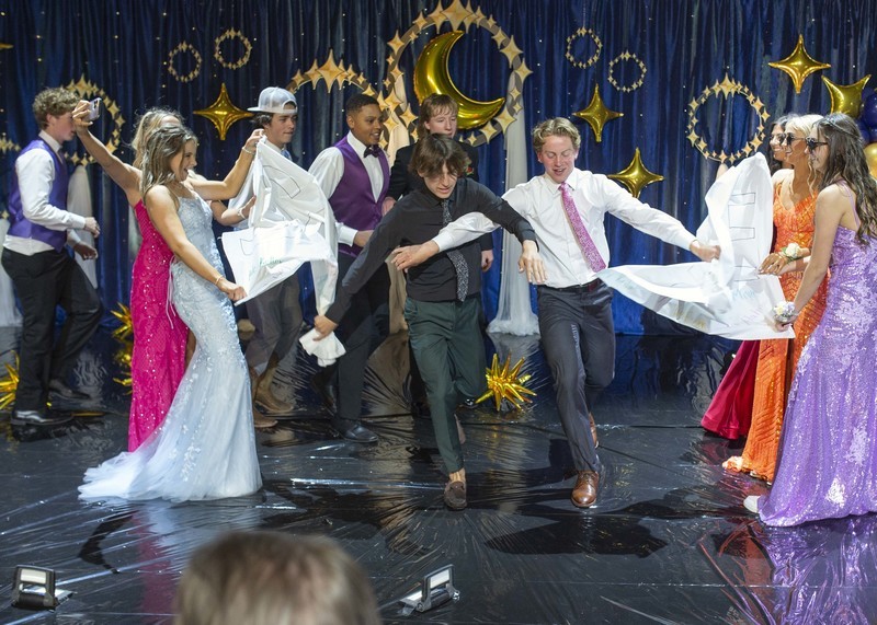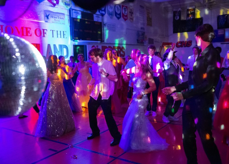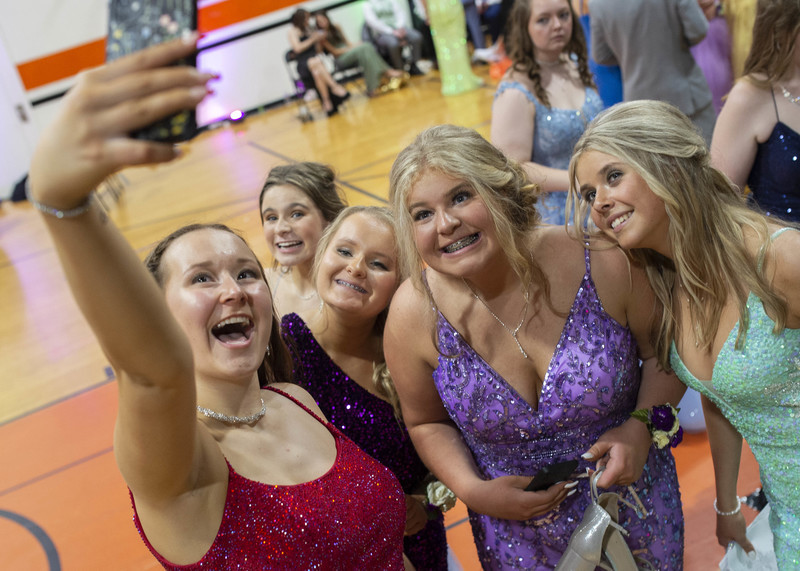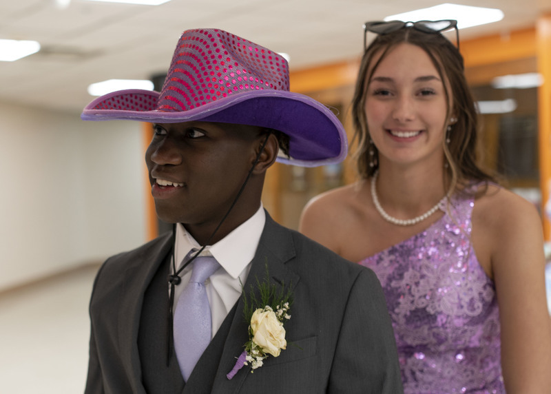 While wet weather most of Saturday afternoon made keeping an elegant hairdo in place and taking photos outside difficult, the rain let up just as prom attendees were pulling their cars up to the school auditorium for the evening grand march.