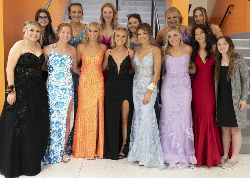 This group might be more comfortable in softball uniforms instead of formal gowns. It includes, L-R, front row: Olivia Shouler, Emma Sweere, Ava Hahn, Greta Hahn, Mariah McCabe, Lilly Lamont, Lacey McCabe and Dakota Lotspeich. Back row: Isabel Duron, Laci Hollerich, Harley Connor, Hailey Plonsky, Cassandra Connor and Lexy Waldon.