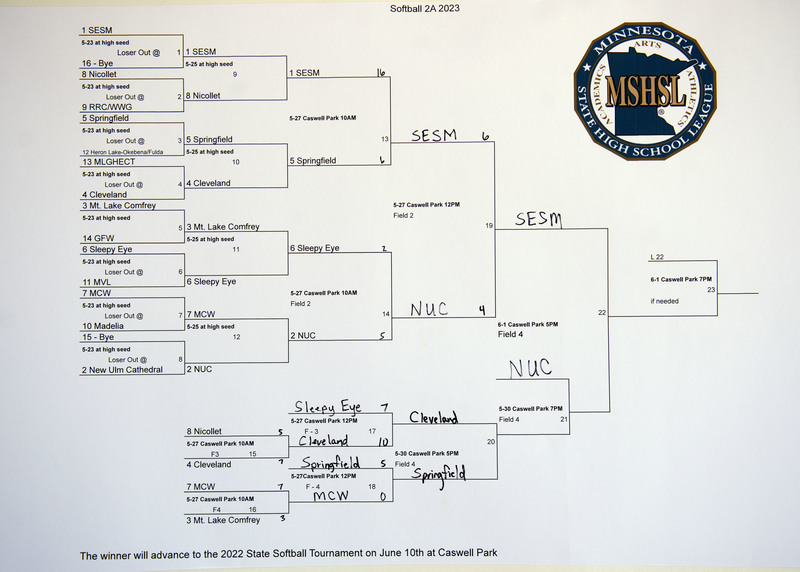 The winner of Springfield vs Cleveland takes on New Ulm Cathedral at 7:00 pm on Tuesday. Both games are at Caswell.