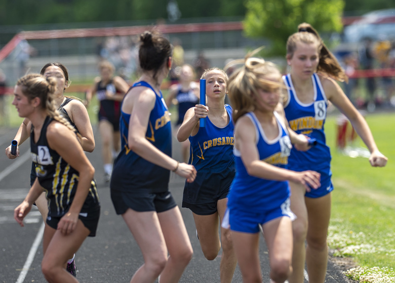 Also on the Mankato West track, the Crusader boys 4x100 team of Henry Strobel, Josh Kann, Nick Huisken and Morgan finished with a 46.46 for 7th place. The winning time was 44.20.