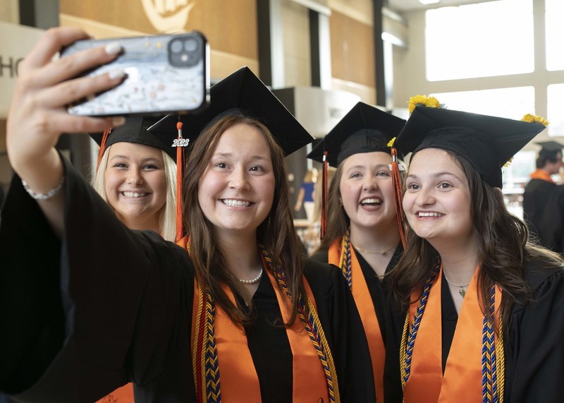 Caitlyn McCarthy, Sarena Remiger, Lilly Draheim and Katie Cink pose for selfie.