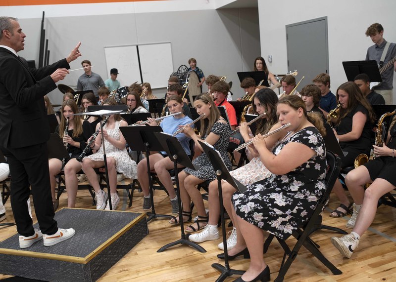 A combined group of school bands under the direction of Erik Hermanson played the traditional Fanfare and Processional/Recessional.