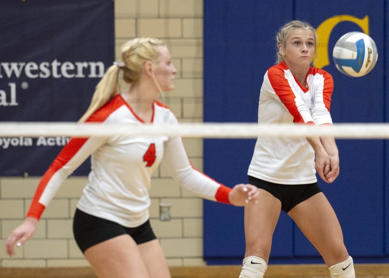 Jordyn Klingel bounces up a serve receive.