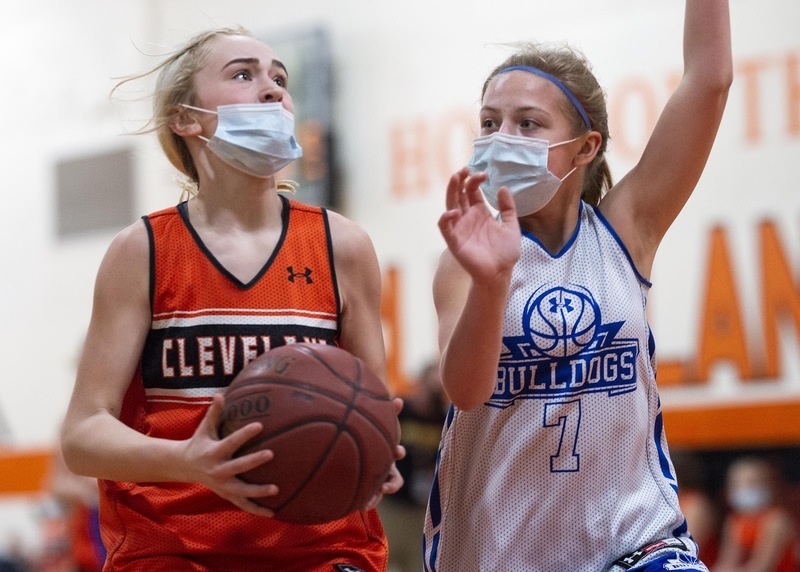 Lacey McCabe’s two-point shot was the game’s first basket. The Bulldogs posted the next four points, but the scoreboard balanced with an Addi Holden (above) bucket.