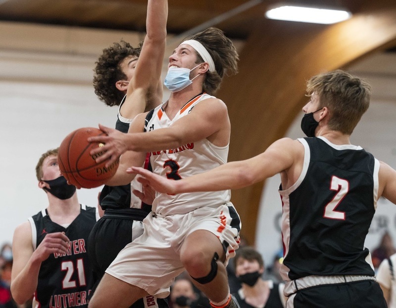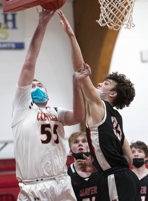 After winning the OT jump, Mayer Lutheran burned a minute and 10 seconds before scoring. Following up, Isaac Mueller took a Holden assist up for a three-point basket that put the Clippers ahead by a point, and they got the ball back when a long Crusader shot flew out of bounds.