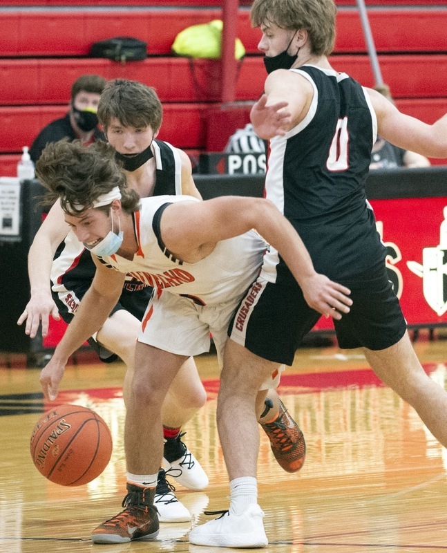 After a McCabe steal, Holden took a Mueller assist in for a basket to tie the game at 24 early in the second half. Sullivan made a three to put the Clippers up 27-26, but the Crusaders, working the ball into Martin, scored the next five points before Eric Rohlfing put a Sullivan handoff in for a basket.