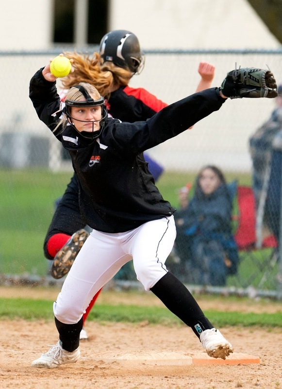 A pitch or two later, the number-two batter reached first on a throw over Harley Connor’s head at first. The next batter doubled, and it looked like the runner would score, but centerfielder Macey Ziebarth hooked up with Laci Hollerich—who had entered the game at catcher—for a tag out at the plate.