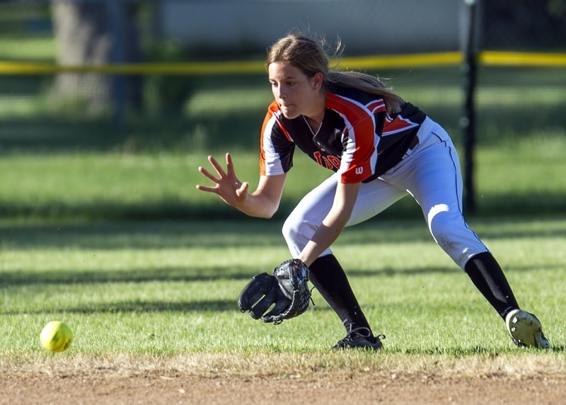 Shortstop Halle McCabe couldn’t quite reach the ball on this putout attempt at third.