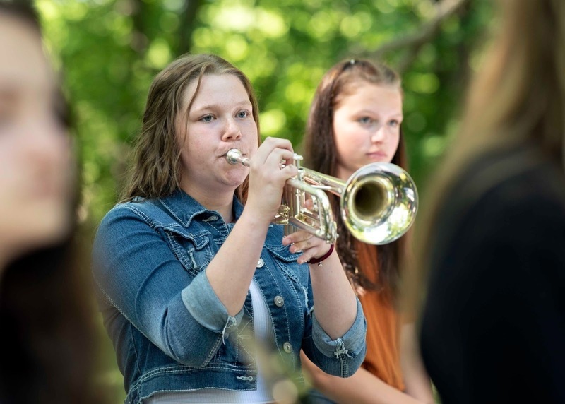 Directed by Erik Hermanson, Cleveland band members (above) provided prelude music, the “Star Spangled Banner” and “Armed Forces on Parade” during the ceremony. Junior trumpeter Morgan Mueller played taps.