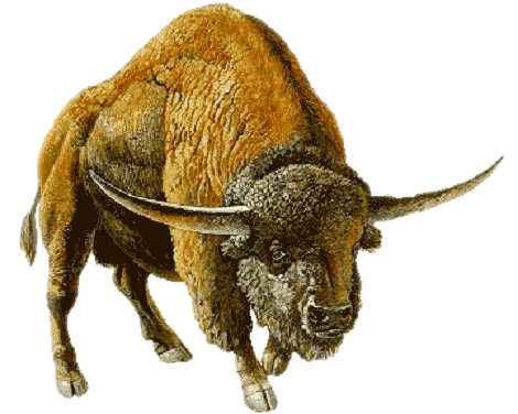 It was slightly larger in body size than the modern plains bison that eventually replaced it. Unlike any bison before it, its horns pointed upward, parallel to the plane of its face from nose to forehead.