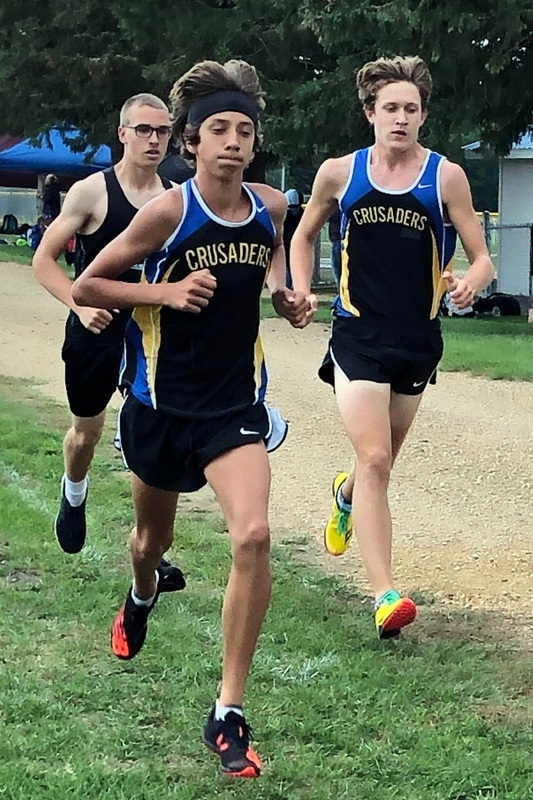 Nathan Strobel (above, photo courtesy of Dale Compton) took fourth in the opening meet of the 2021 Loyola-Cleveland cross-country season, held on the Crusader's course on the Mankato Loyola hill on Wednesday.
