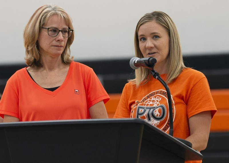 McCabe went on to introduce Heidi (Voit) Wobbrock and Jeri (Thieman) Miller, leaders of the Next 100 Years Committee. Formed after the second referendum went down, the group was dedicated to promoting awareness of the school’s needs and to encouraging the community to vote for the project.