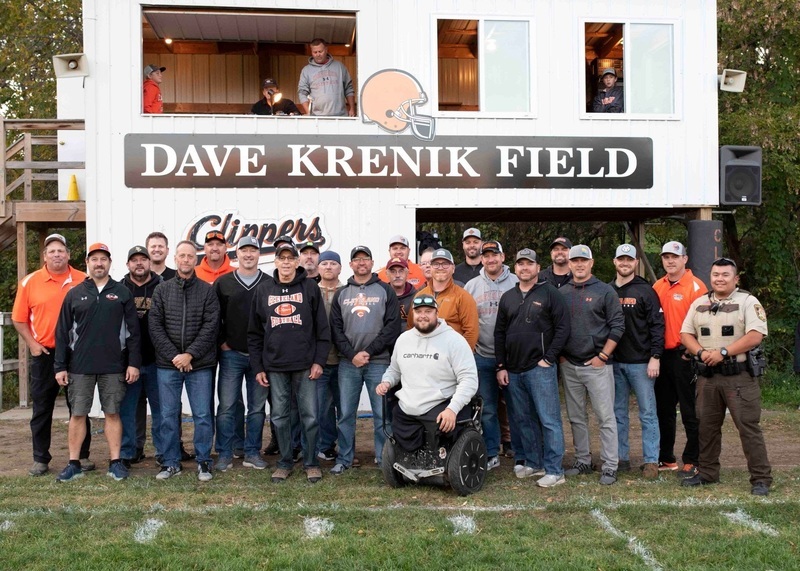 “A week ago, 25 former players and school personnel stopped at my house and told me about this,” Krenik said in a short speech during the ceremony. “I was overwhelmed and honored. A week later, I still am.”