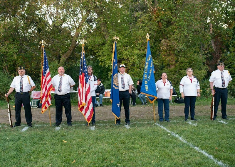 The Cleveland Color Guard added to coach Krenik’s honor. It included, from left to right, Andy Queen, Dennis Hiller, Susan Eppmeyer, Stan Ziebarth, Anne Hiller, Judy Hahn and Bob Hahn.