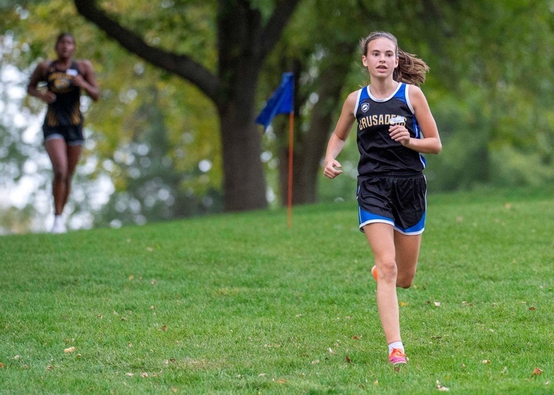 For the junior high girls 1600, Charlotte Kirshner finished first for the Crusaders and seventh overall with a 7:29. Valentina Rohlfing was 11th with an 8:03, and Hannah Coudron was 12th with an 8:19. There were 17 runners, and the winning time was 7:09.