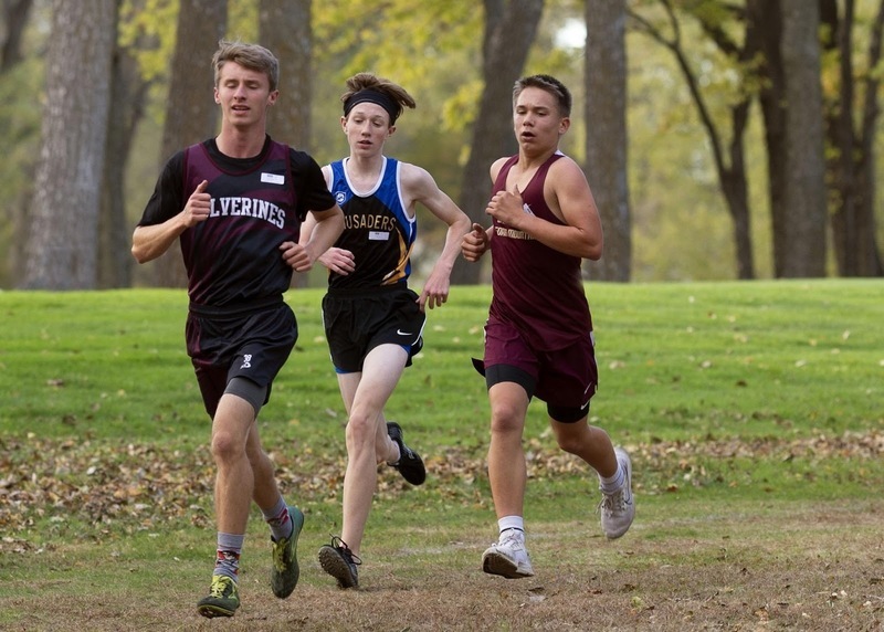 Rounding out the 25-runner field for the junior high Crusader boys, Isaac Coudron was 16th (11:44.68), Jack Sullivan was 19th (13:02.01), and Charlie Maxfield was 23rd (13:38.65).