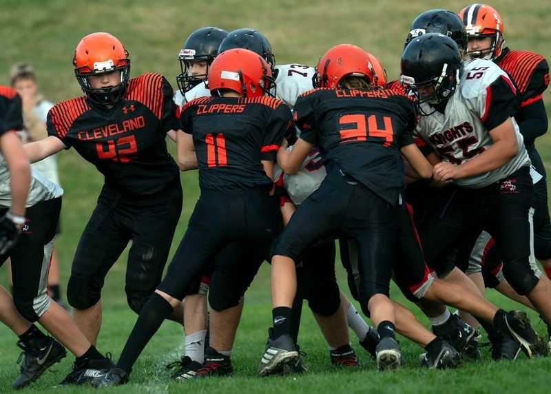 With a catch by seventh grader Caleb Connor on a throw from his classmate Lyons, the Clippers got in the red zone on their first possession. A few plays later, Lyons plunged in from 2.5 yards out. The Knights thwarted the PAT run, but the Clippers were up 6-0 early.