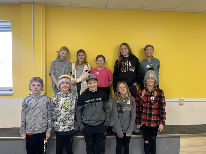 6th grade student council members: Zander Linder, Jackson Kopp, Jocelyn Kortuem, Kayla Hoffman, and Ava Kluntz