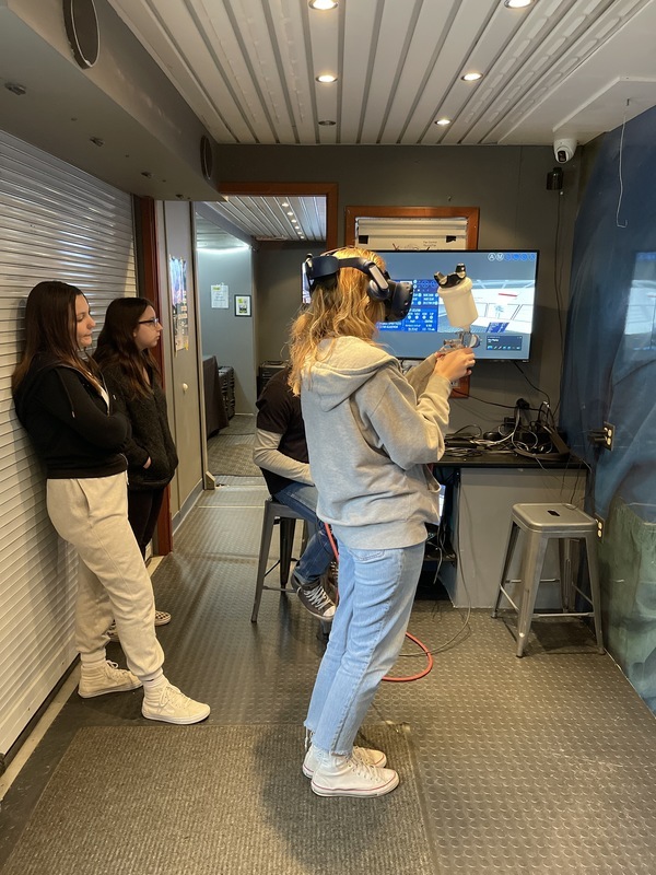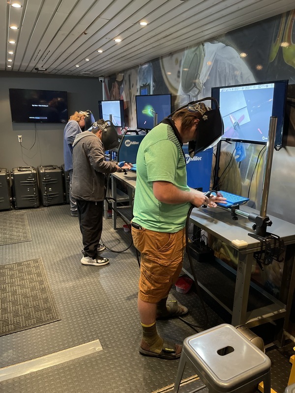 Cleveland students had the opportunity to explore a virtual excavator, welding simulator, industrial painting, and 23 other different trades with today's Big Ideas Trailer career event.